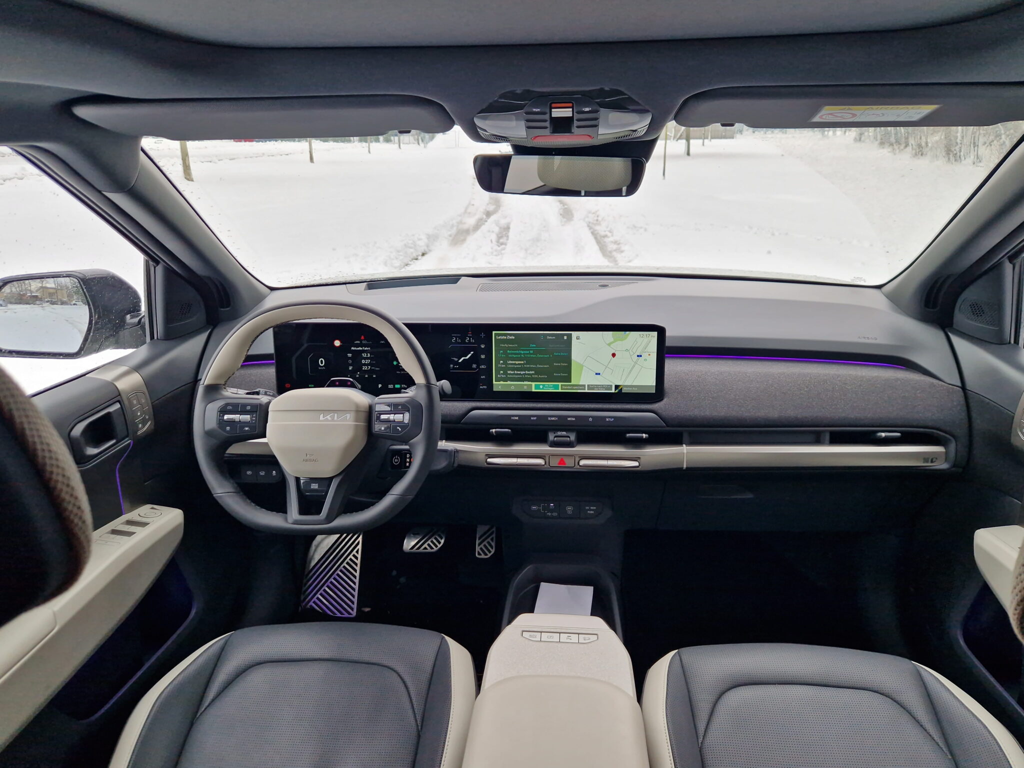 Bemerkenswert ist die KI unterstützte Sprachassistentin. Durch sie kann nicht nur viele Einstellungen im EV3 bedienen, sondern auch Wetterauskunft, Informationen zur Routenplanung und einfache Informationen zum Alltag bekommen. Beispielswiese Infos über Einwohnerzahlen oder auch einen flachen Witz. Hier zeigt sich beeindruckend, was man mit einer guten KI im Auto alles machen kann. Ich finde dass hier noch viel Potential zur Bedienung schlummert.