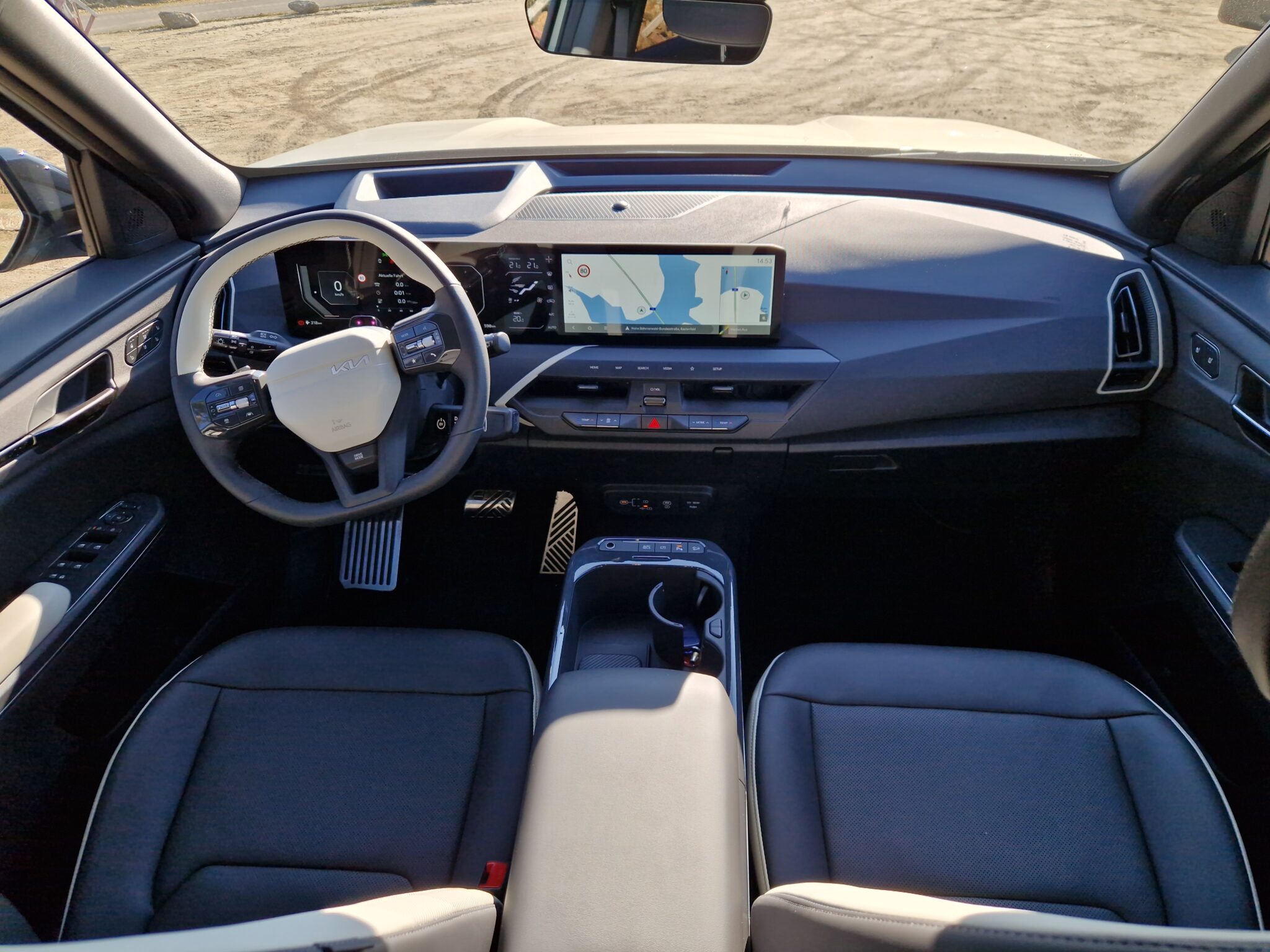Sehr beeindruckt hat mich die Sprachsteuerung mit KI Unterstützung! Sie kann viele Funktionen im Auto steuern, Personen anrufen, versteht in meinem Test Problemlos viele Navigationsziele und kann einfache Texte als Nachricht verschicken. Zusätzlich gibt die KI auch Antwort auf einfacher Wissensfragen oder erzählt mal einen sehr flachen Witz. Hier lässt sich noch viel Potential für zukünftige Anwendungsgebiete erkennen wenn man an einen digitalen Assistenten während des Autofahrens denkt. Leider benötigen die meisten KI Funktionen noch eine zuverlässige Onlineverbindung, aber diese ist im Kia überraschend stabil vorhanden.
