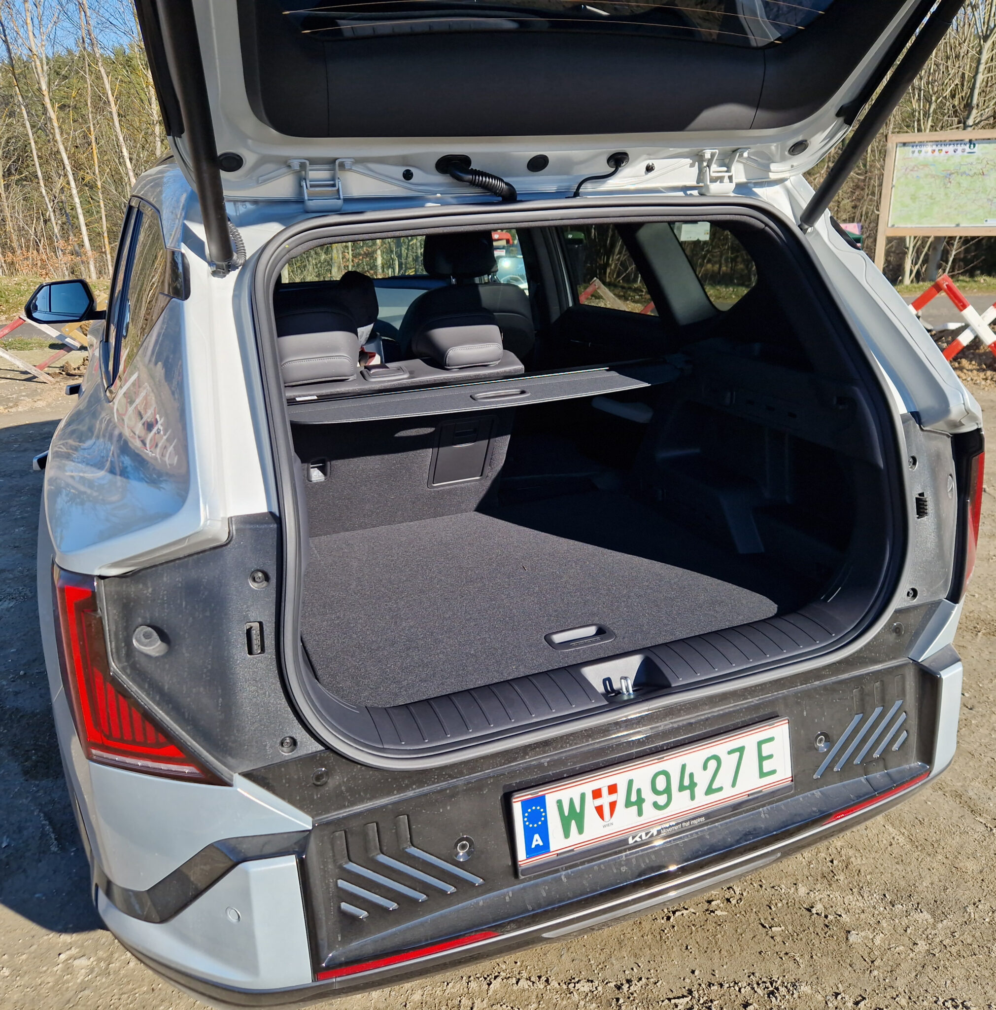 Unter dem markanten Blech steckt solide Elektro-Technik, wobei Kia hier auf ein 400-Volt-System setzt (statt der 800-Volt-Architektur des EV6 oder EV9), was den Preis attraktiver macht. Mit einer Beschleunigung von 0–100 km/h in ca. 8,5 s und einer Höchstgeschwindigkeit von 165 km/h ist er gut aufgestellt, aber kein Sportler. Geladen wird mit 11kW AC oder mit bis zu 150kW DC (400V System) in ca. 30 Minuten von 10% auf 80%. In meinem Test sah ich allerdings keine Ladeleistung über 110 kW.