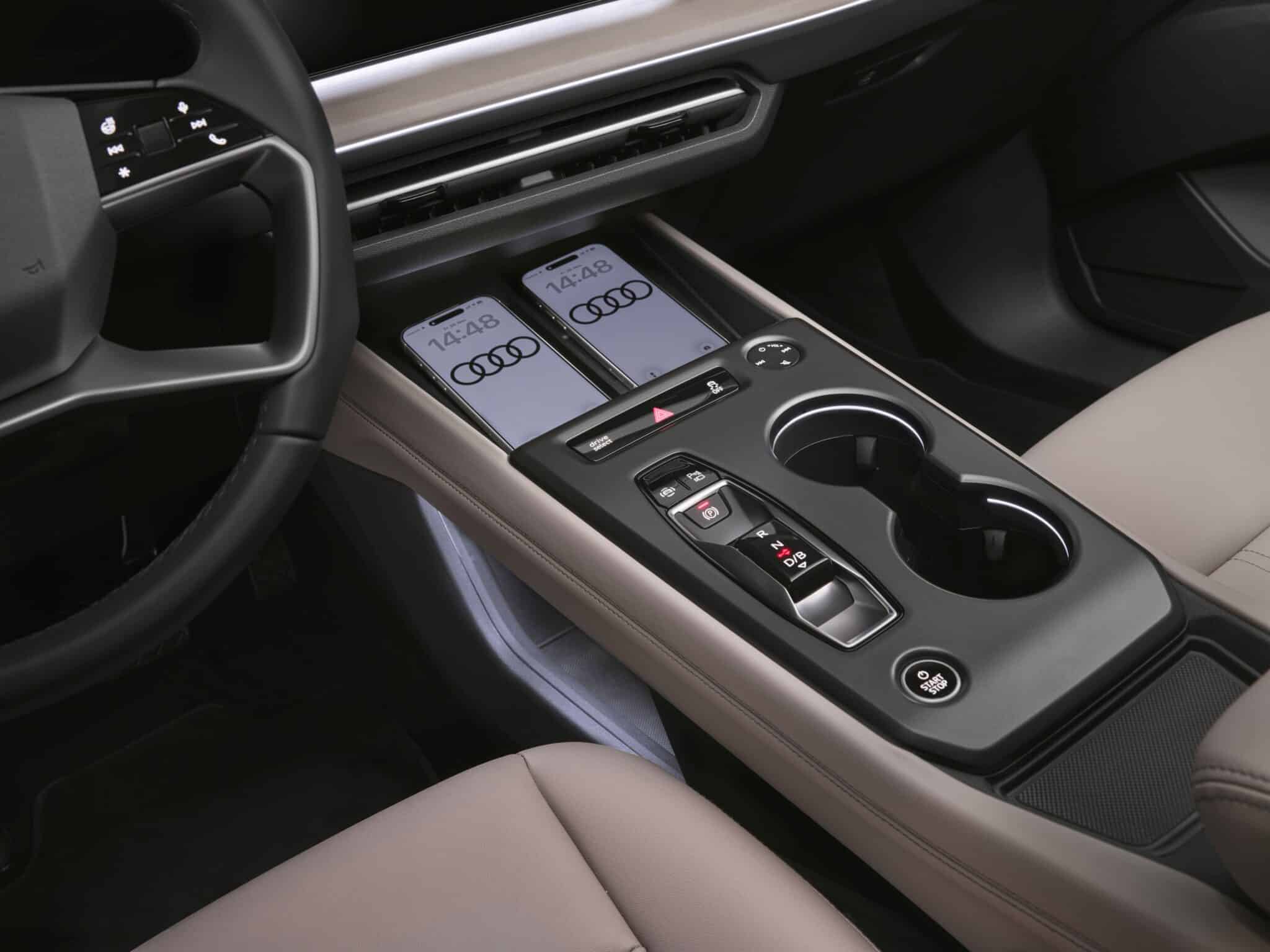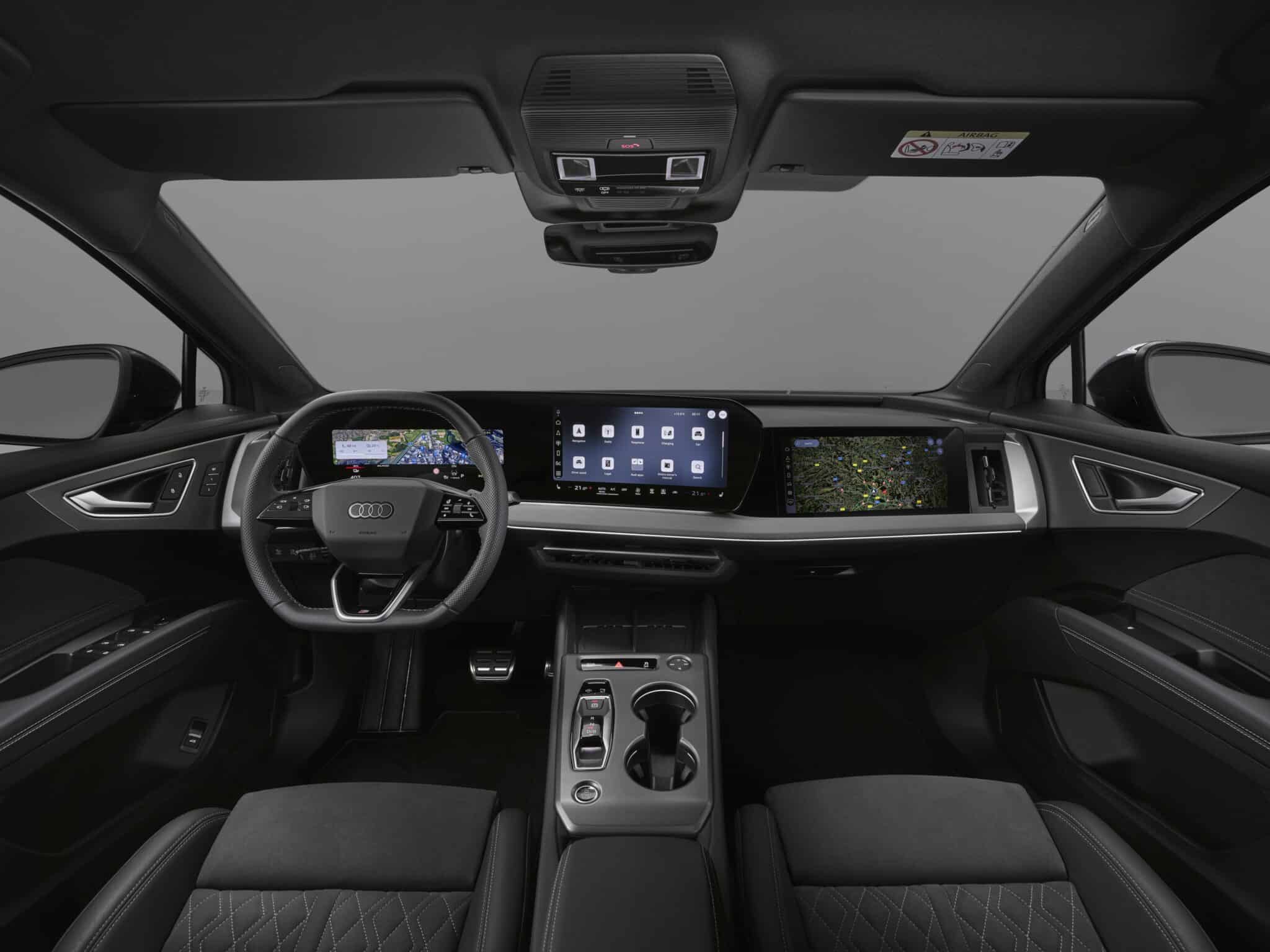 Ein deutliches Plus an Komfort und Variabilität erwartet die Kundinnen und Kunden auch im komplett neu gestalteten Interieur, das wahlweise auch in S line bestellbar ist. Herzstück des großzügigen Innenraums ist die Digital Stage: Ein Panoramadisplay mit 11,9″ großem Kombiinstrument und 12,8″ großem MMI Touchdisplay sorgt dafür, dass Fahrerin oder Fahrer alles im Blick haben. Optional ergänzt ein 12″ großes Beifahrerdisplay mit individualisierbarem Standby-Design das Setup. Mit dem neuen One Connected Infotainment erweitert Audi Komfort- und Entertainmentfunktionen. Der lernende Audi assistant steuert Fahrzeugfunktionen per Sprachbedienung und beantwortet Fragen zu Bordbuchinhalten. Über die Anbindung an ChatGPT können Insassen recherchieren und in natürlicher Sprache mit dem Fahrzeug interagieren. Für gesteigerten Komfort und Wohlfühlambiente sorgen zudem ein dynamisches Interaktionslicht, die neue Mittelkonsole sowie zwei gekühlte induktive Ladeschalen mit je 15 Watt Ladeleistung. Der Softwrap schafft mit seiner großen Applikationsfläche von den Türen bis über die gesamte Breite des Dashboards ein durchgängiges, hochwertiges Raumgefühl. Vertikale Lüftungsdüsen betonen die Breite des Cockpits.