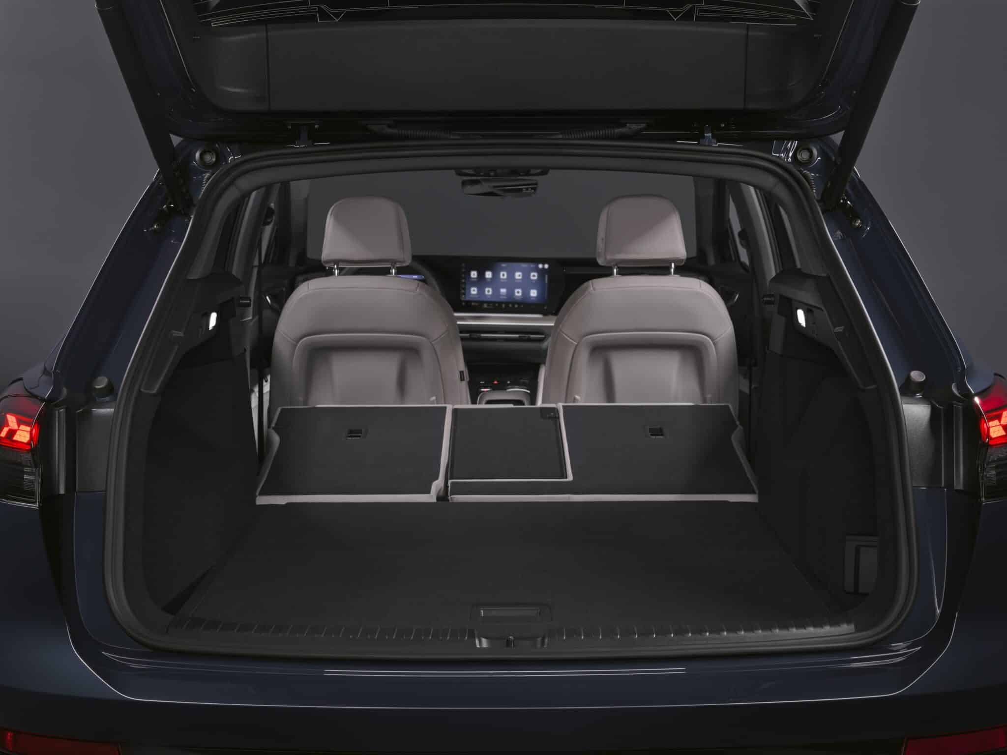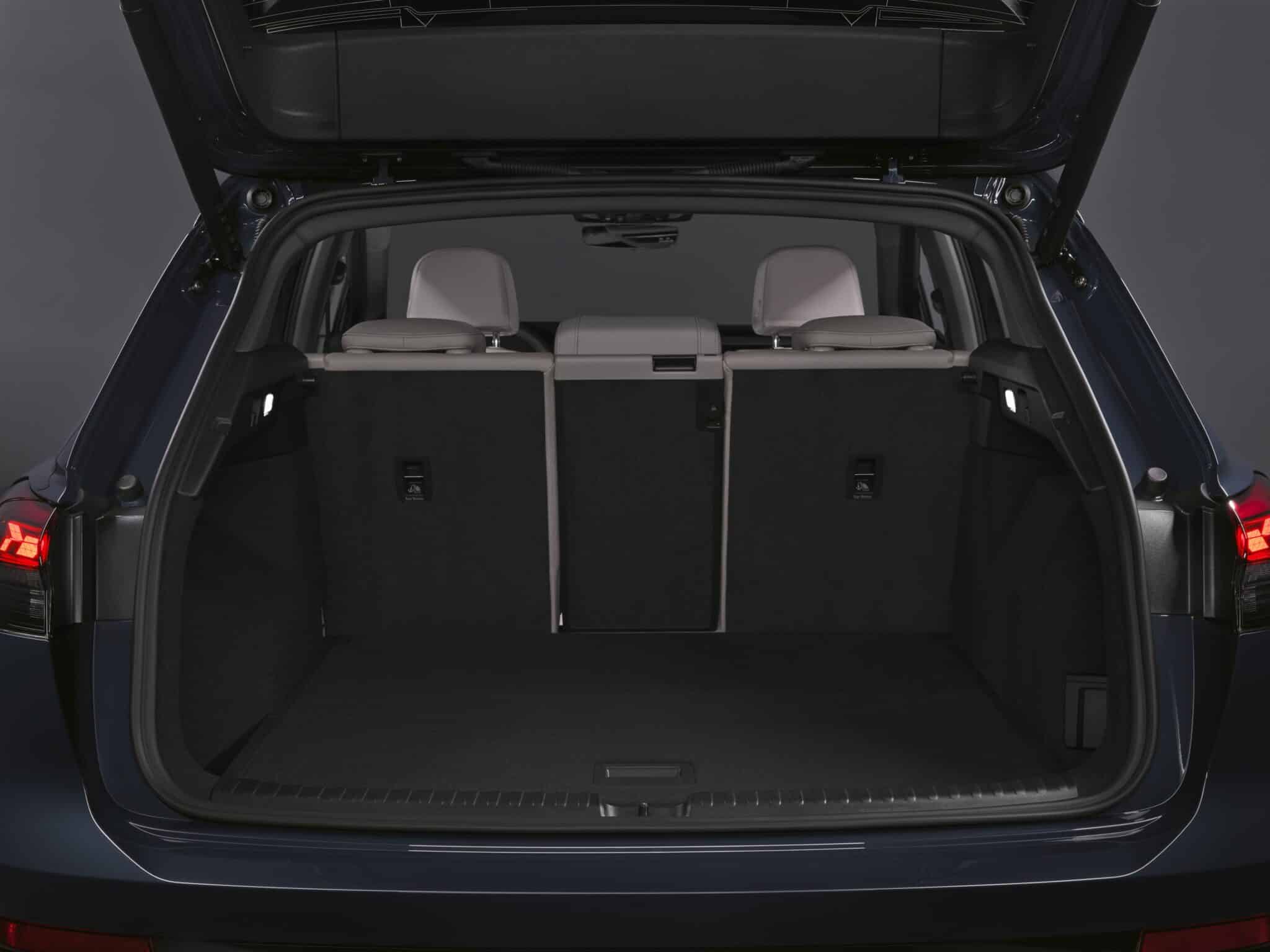 Audi bietet den Q4 e-tron als SUV und Sportback jeweils mit zwei Batteriegrößen an. Zur Wahl stehen 63 kWh brutto und 82 kWh brutto. Mehr Alltagstauglichkeit bringen die auf 1.800 Kilogramm erhöhte Anhängelast (+400 kg) bei den Modellen mit quattro Antrieb, die serienmäßige elektrische Heckklappe und das Kofferraumvolumen von 515 Litern. Mit umgeklappter zweiter Sitzreihe wächst der nutzbare Gepäckraum auf 1.487 Liter.