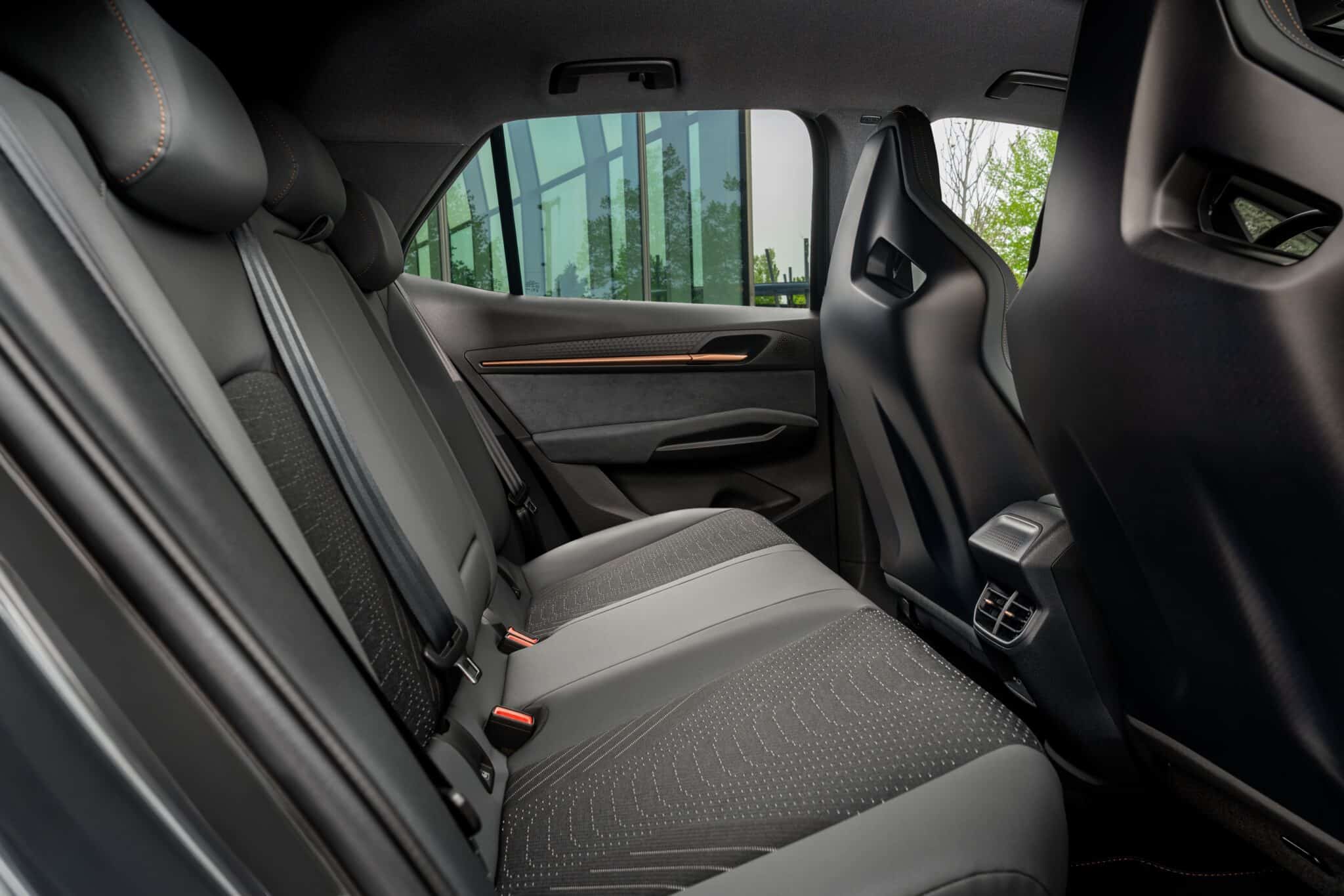 Der Innenraum vermittelt ein hochwertigeres Gefühl mit neu gestalteten Türverkleidungen vorn und hinten, einem neu gestalteten Lenkrad mit physischen Bedienelementen, ergänzt durch kreislauffähige Materialien wie Armaturenbrettverkleidungen aus 75 Prozent recycelten Materialien sowie SEAQUAL®-Garn aus upgecyceltem Meeresplastik oder 73 Prozent recyceltem Dinamica®-Textil im mittleren Bereich der vorderen Sitze sowie der hinteren Seitensitze.