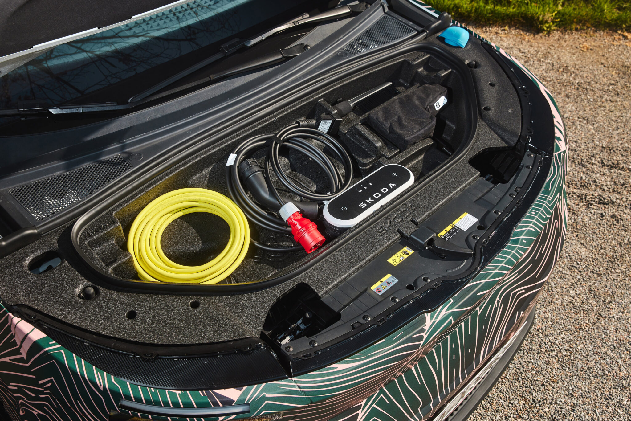 Neben der Siebensitzer-Variante ist der Peaq auch als Fünfsitzer erhältlich. In dieser Konfiguration bietet er mit einem Fassungsvermögen von bis zu 1.010 Litern den größten Kofferraum aller Škoda Serienmodelle. Der Siebensitzer verfügt bei ausgeklappter dritter Sitzreihe über bis zu 299 Liter Kofferraumvolumen. Ein zusätzliches, praktisches 37‑Liter‑Staufach – der ‚Frunk‘ – befindet sich unter der Fronthaube und vergrößert das Gepäckvolumen noch weiter.