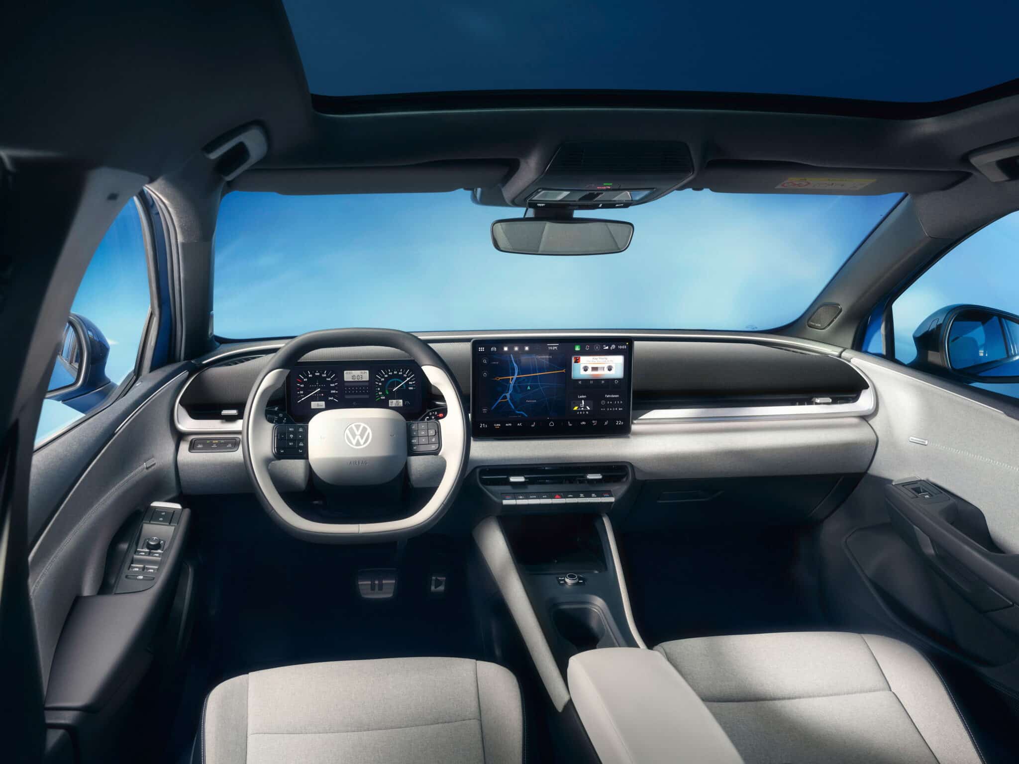 Besonders prägend ist im ID. Polo die neue Cockpit-Landschaft. Auf der Sichtachse ist das „Digital Cockpit“ mit einer Diagonale von 26,0 cm (10 Zoll) angeordnet. Das Touchdisplay des neuen Infotainmentsystems „Innovision“ (mit einer Diagonale von 32,77 cm / 13 Zoll) ist zentral in der Instrumententafel verortet und sowohl für den Fahrer als auch den Beifahrer gut erreichbar. Klar gestaltete und ideal erreichbare Bedienelemente, moderne Anzeigen und Grafiken, aber auch innovative Features wie die „Retro-Anzeige“, die einen Hauch von Nostalgie in die digitalen Instrumente bringen (Look & Feel des Golf I Facelift).