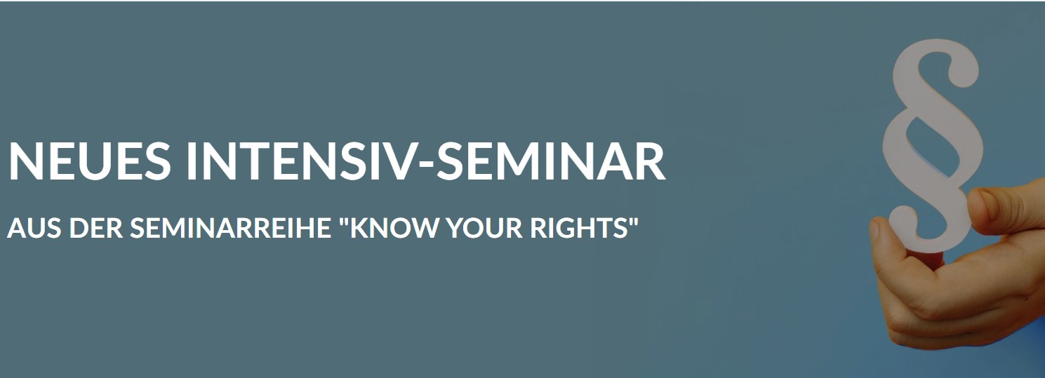 wir freuen uns, Ihnen im Rahmen unserer Seminarreihe „Know Your Rights“ ein weiteres Themengebiet ankündigen zu dürfen.