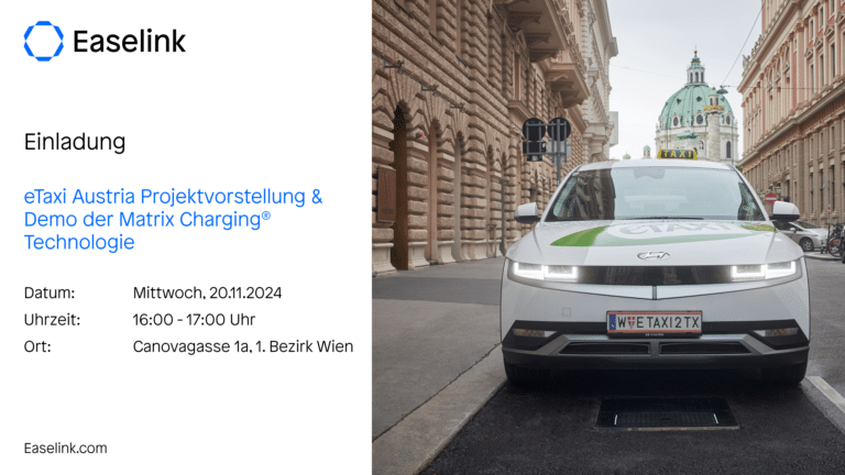 Easelink lädt uns zu einer eTaxi Austria Projektvorstellung an einen Stand- und Ladeplatz ein, wo ausgewählte eTaxis mit Matrix Charging®, dem automatisierten konduktiven Ladesystem, vollautomatisch laden. Vor Ort wird die Umsetzung der in der Fahrbahn … Weiterlesen…